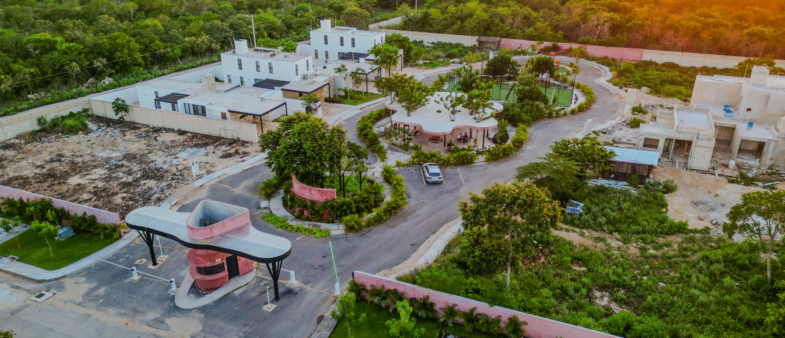 Oviedo es un desarrollo ubicado en Mérida Yucatán, conformado por 16 lotes y casas residenciales cuyo fin es brindar el refugio ideal, un perfecto escape del caos de la ciudad.