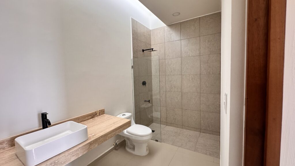 - Puerta de Vidrio templado en ducha de recámara principal y baño secundario